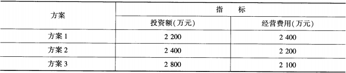 某技术改造项目有三个互斥方案,其投资额和经营费用见下表。