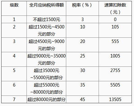 附:工资、薪金所得适用个人所得税税率表 :