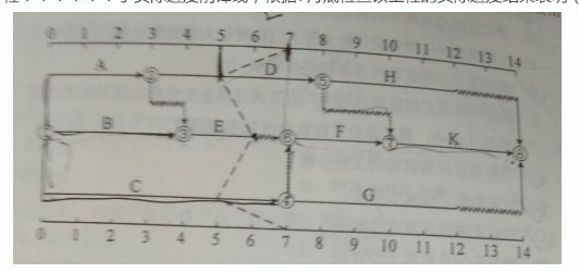 某工程标网络计划如下图所示,当工程进行到7月底时,检查了该工程的实际进度前锋线,根据7月底检查该工程的实际进度结果表明()。