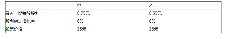 A.甲、乙股票,股利收益率相同